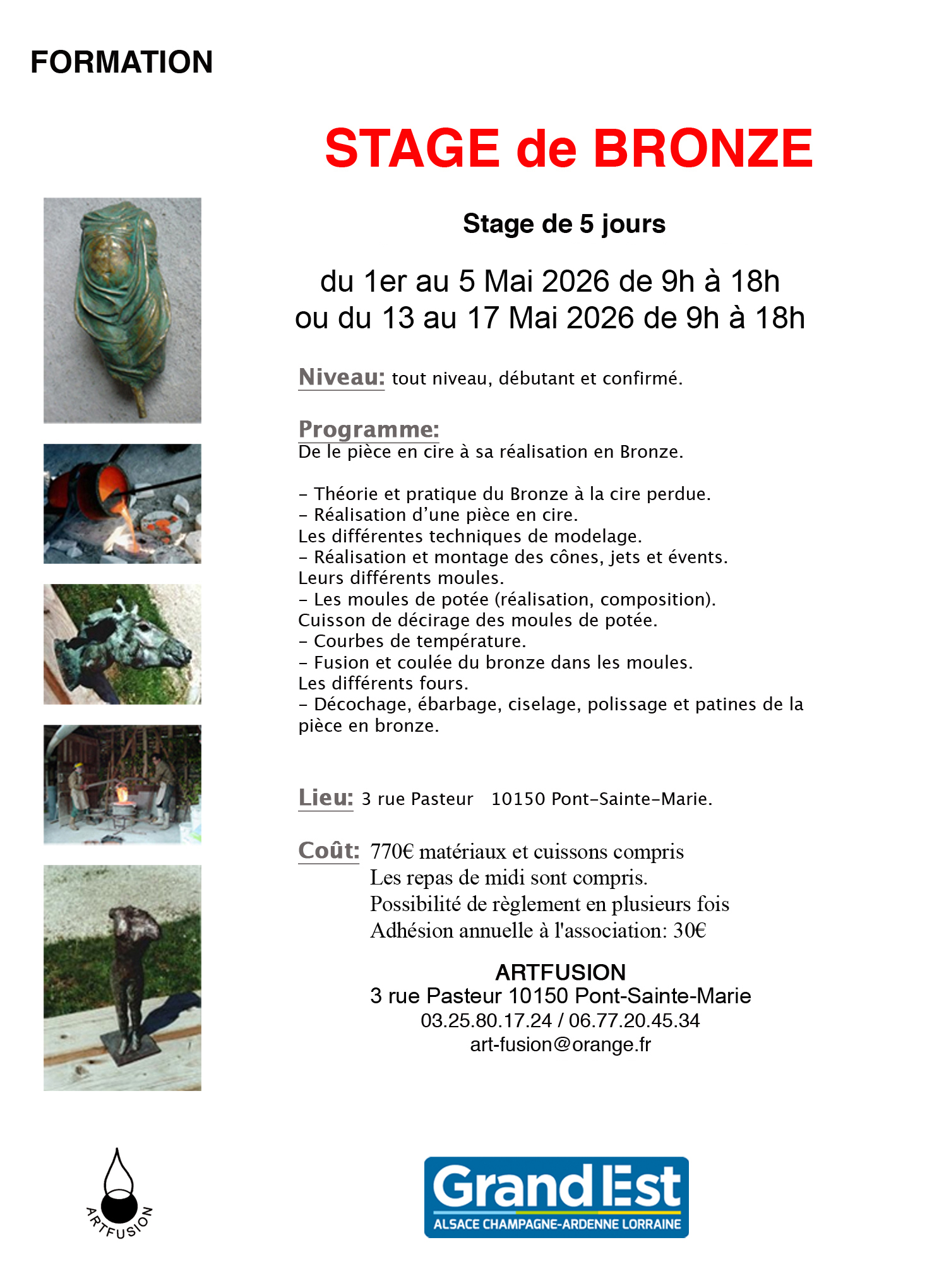 Cours et Stages Sculpture, Moulage, Verre, Bronze à la cire perdue: voir "actualités"
