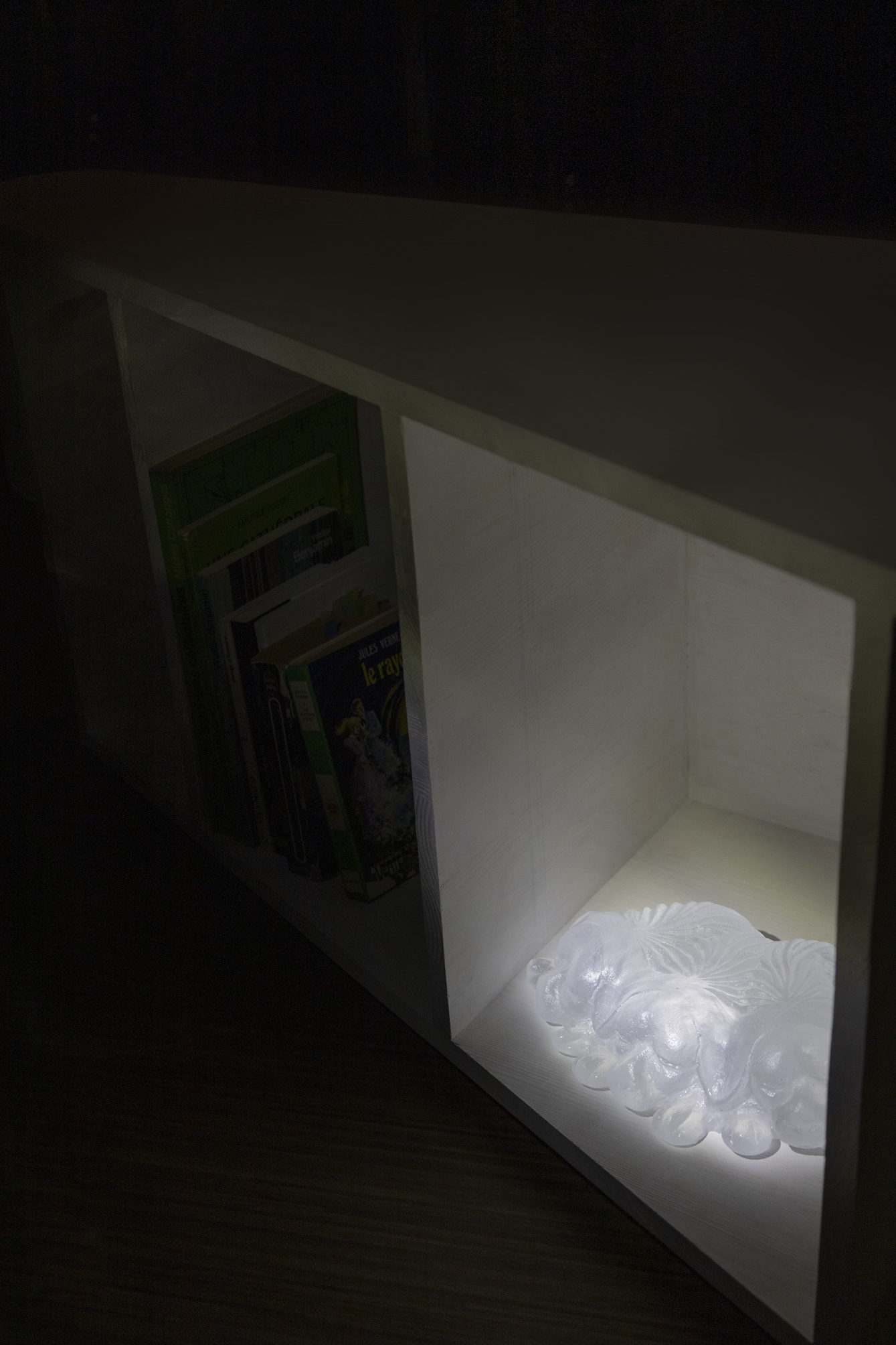Les interstices dans le sens des mots et les particularités des matières font ici l'objet d'un croisement et d'un jeu qui dérive vers un basculement, d’un état à l’autre. Ce seuil de transformation, où les contours se floutent, nous renvoie à nos rêves : cette étape entre deux réveils où notre mémoire flanche et le temps devient incertain. À leur image, l’exposition a été conçue en imaginant des instants fugaces, des moments de transition et de changements d’état : le jour devient nuit, une forme se transforme, un équilibre bascule. Les artistes explorent ainsi ces zones de passage, où le réel se meut, se fissure ou bascule vers un autre horizon.