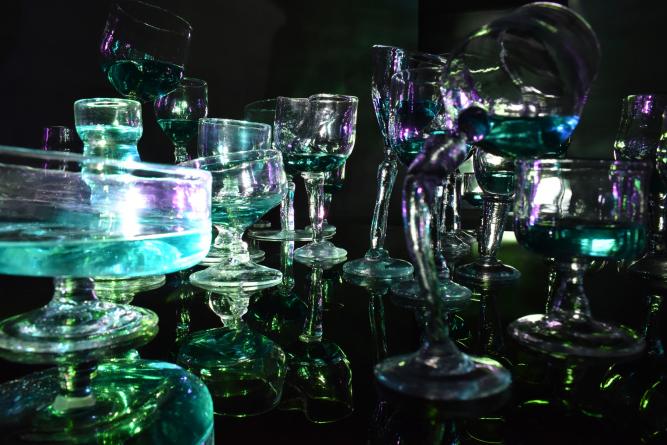 Pierre Croissant, Dimæ, Marguerite Kalt et Alexandrine Thiers Lasvergères sont diplômé·es de l’atelier Verre de la Haute école des arts du Rhin à Strasbourg, où iels se sont rencontrées.