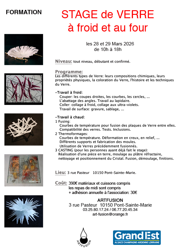 VERRE A FROID ET AU FOUR: les 8 et 9 Mars 2025 de 10h à 18h